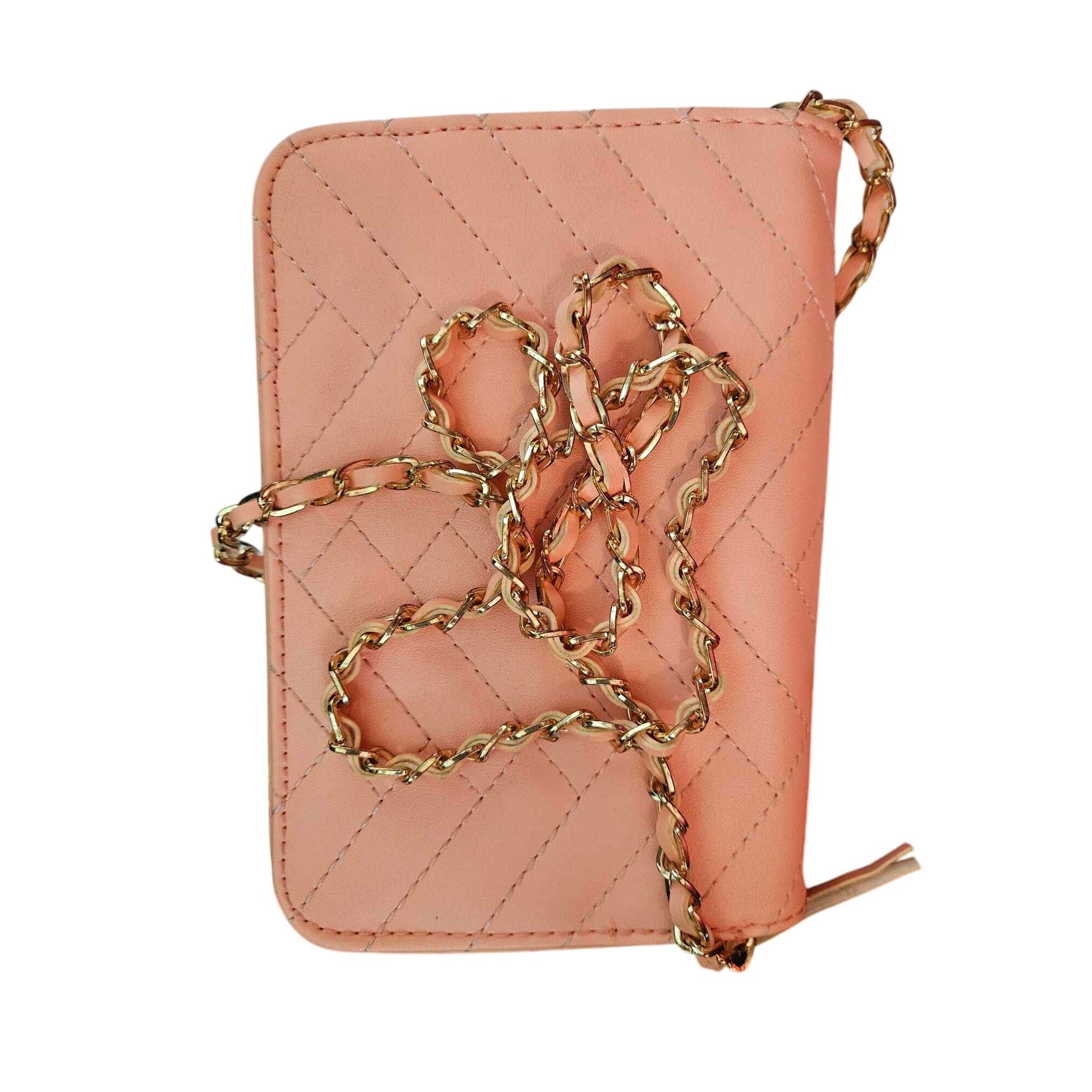 Bebe Quilted Faux Leather Crossbody Wallet Purse With Gold Chain Strap Pink