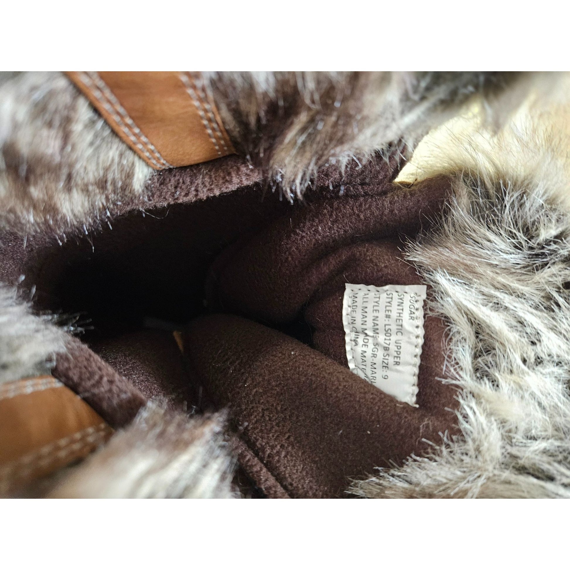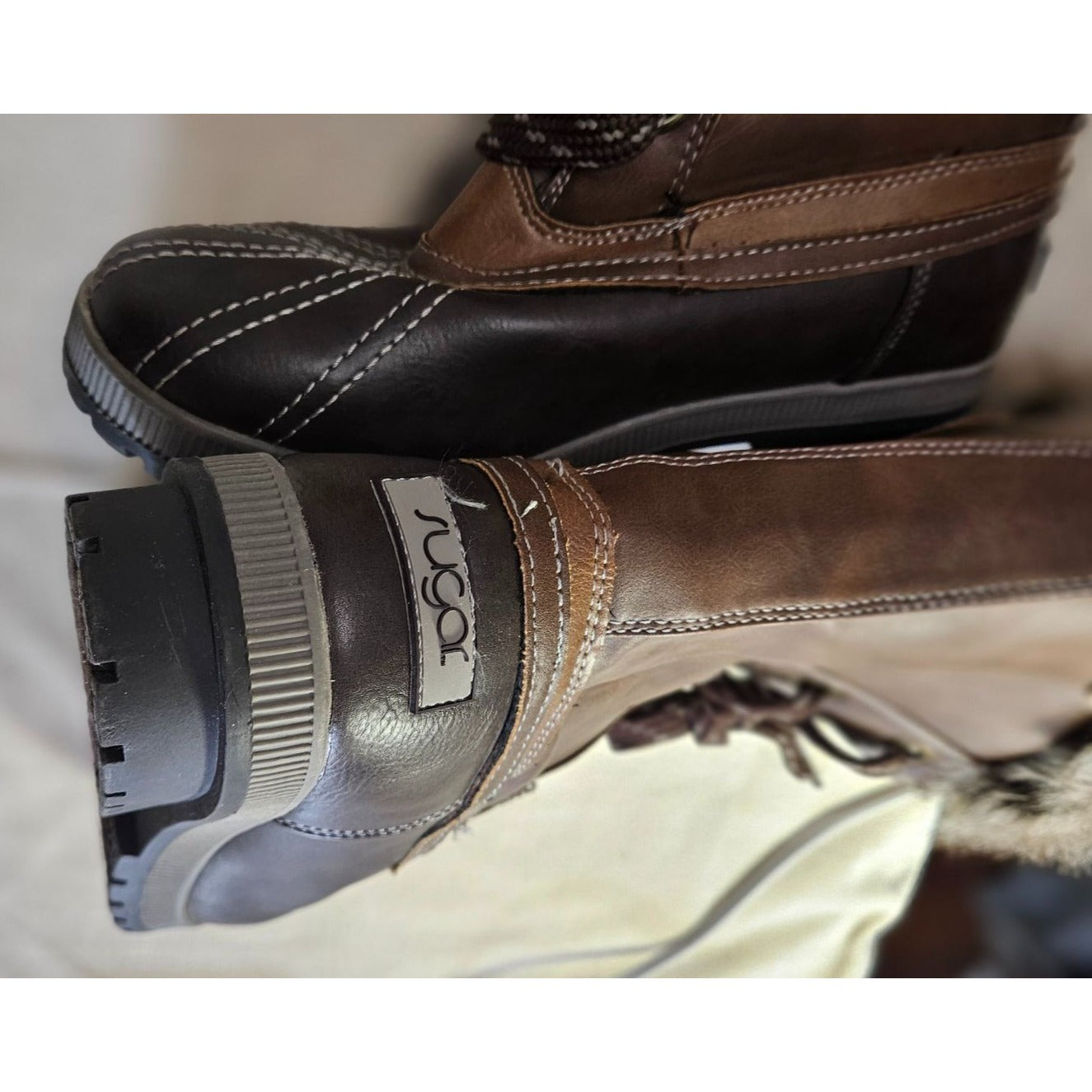 Brown Faux Leather & Fur-Lined Winter Snow Boots By Sugar Lace-Up Durable Outsole Womens Size 9 Stylish & Warm Outdoor Footwear