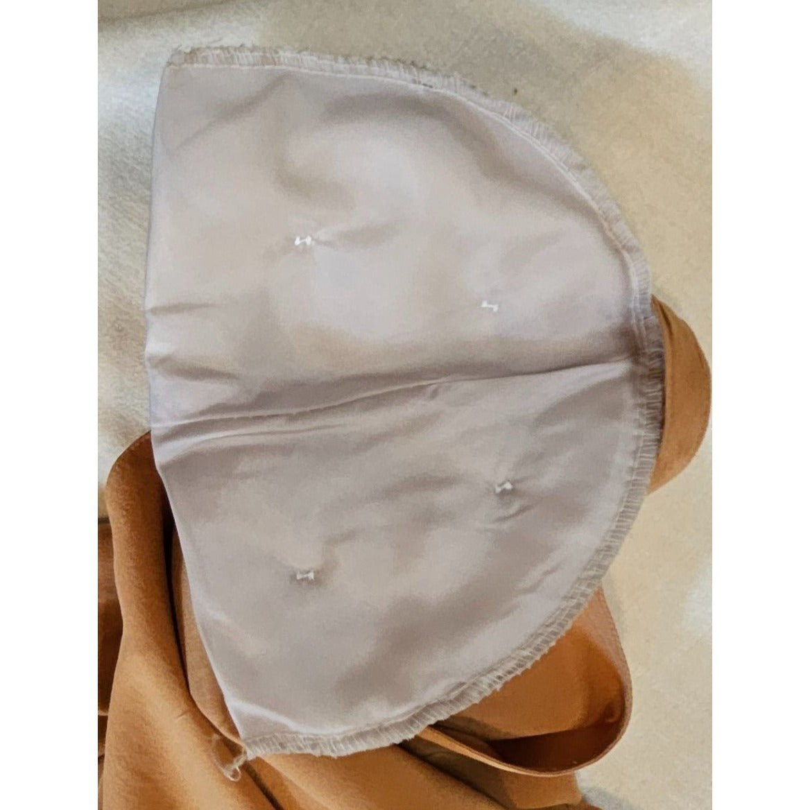 Brown Satin Short Sleeve Top With 80s Shoulder Pads & Back Button Closure M