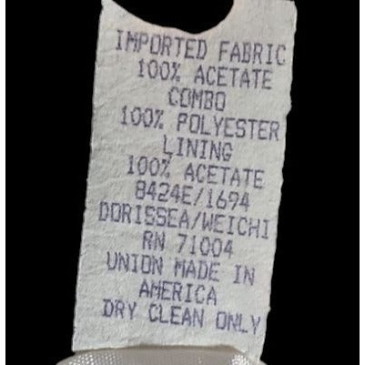 This elegant Karen Lawrence blazer, crafted from acetate and polyester, offers a sophisticated look with its unique textured pattern and sleek silhouette. Union made in America, it ensures quality and durability. Ideal for professional settings, it combines style with practicality.