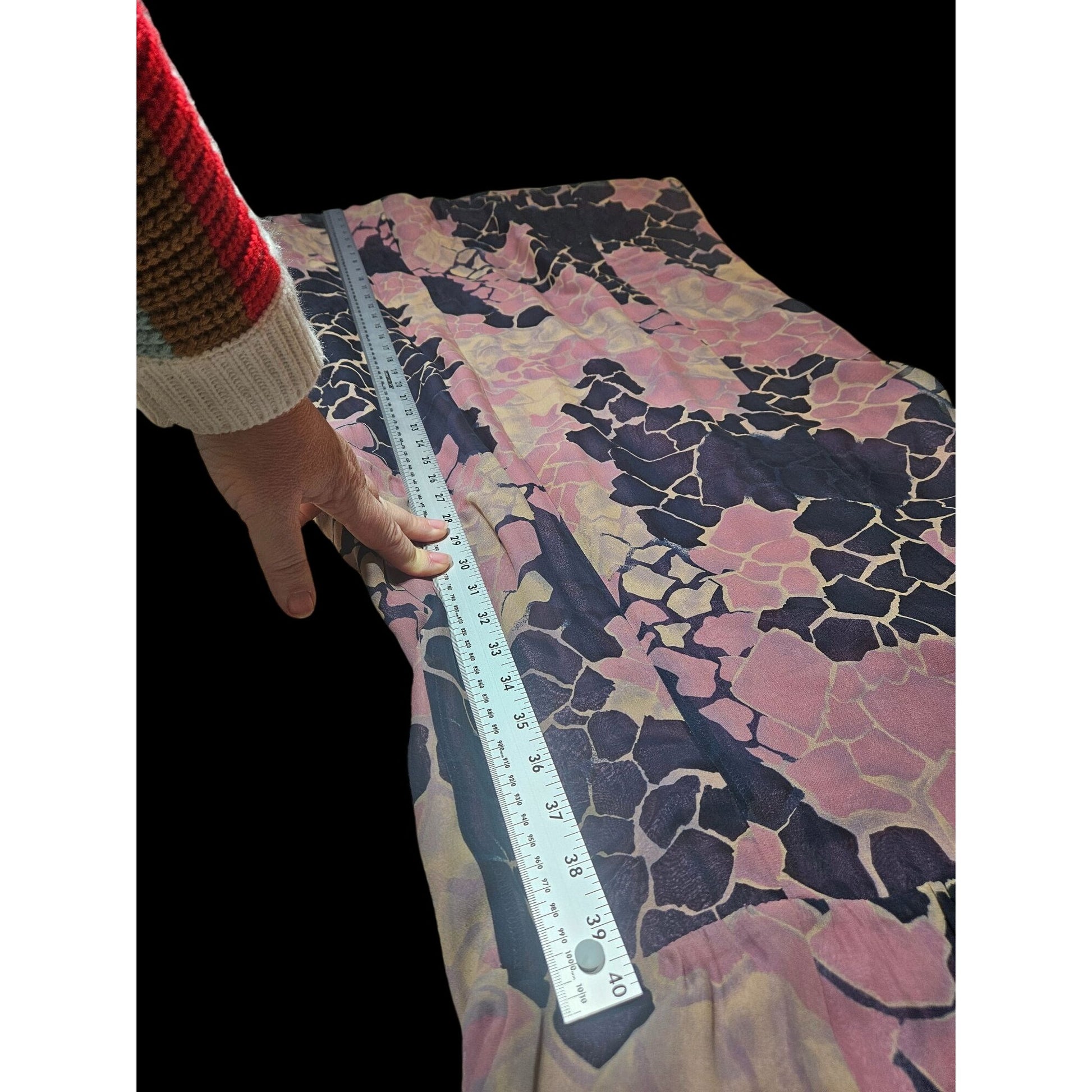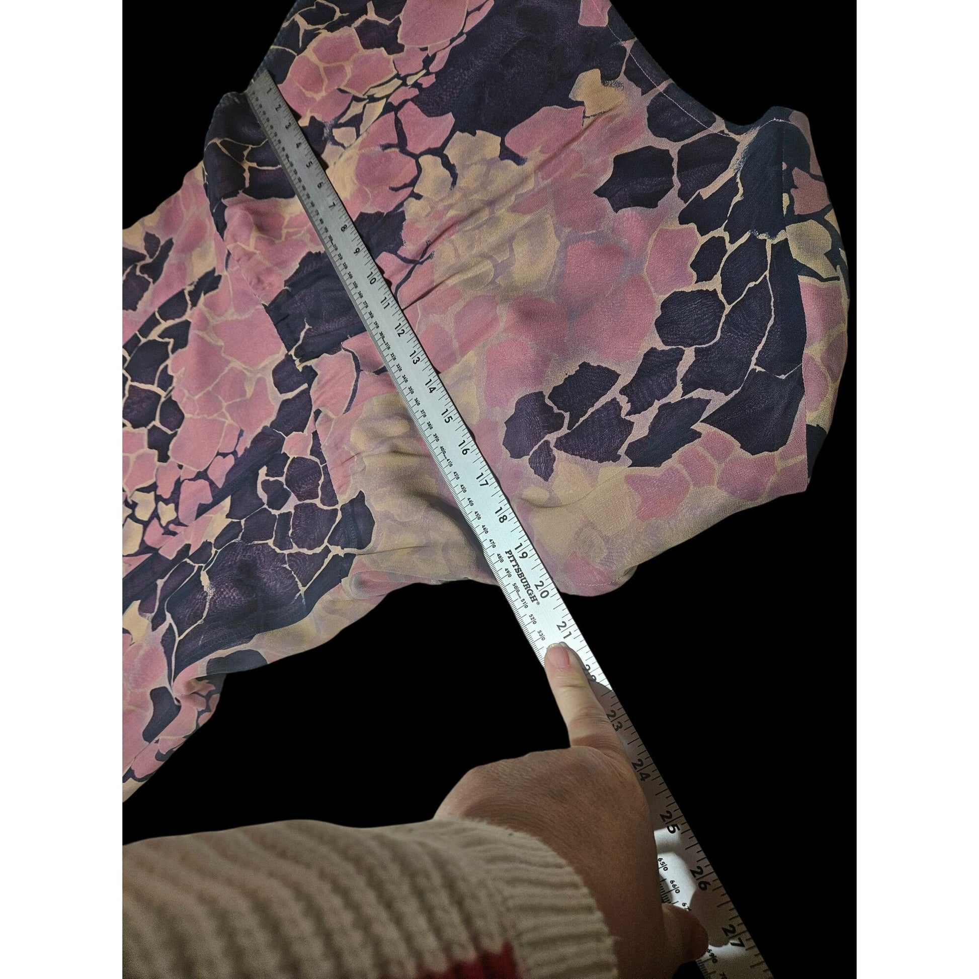 This vintage floral midi dress unfolds a tale of elegance through its thoughtful design. The fabric drapes beautifully from a top-to-waist length of 12 inches, flowing down 40 inches to skim the floor gracefully. With a waist size of 34 inches, it accentuates the wearer’s form, while the 20-inch pit-to-pit measurement ensures comfort as it narrates stories of past elegance.